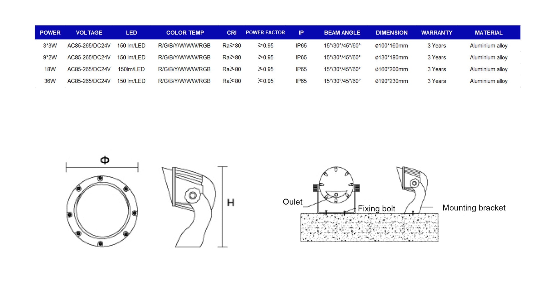 - The body is made of die-casting aluminium alloy with excellent heat-dissipation.