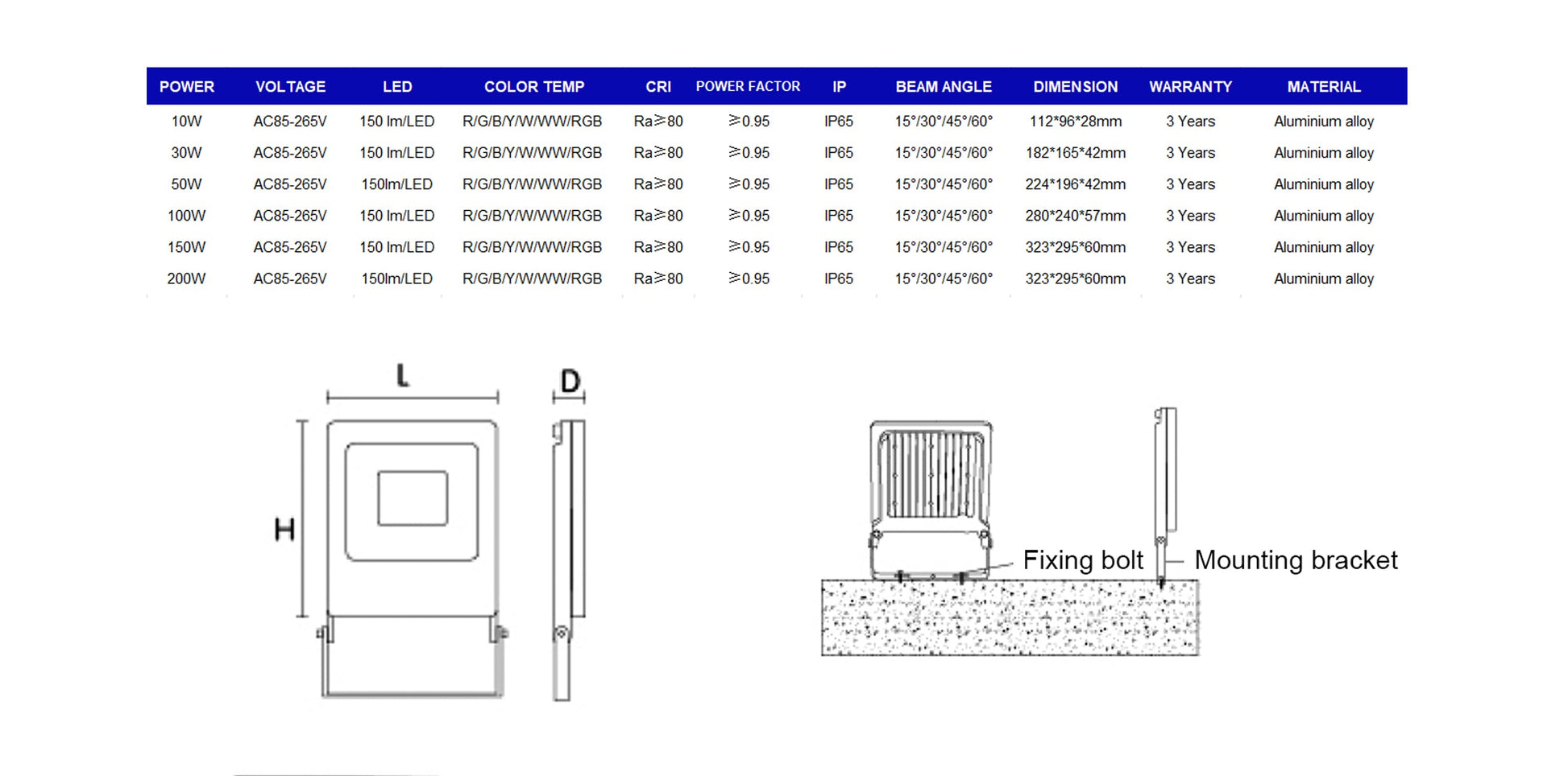 - The body is made of die-casting aluminium alloy with excellent heat-dissipation.