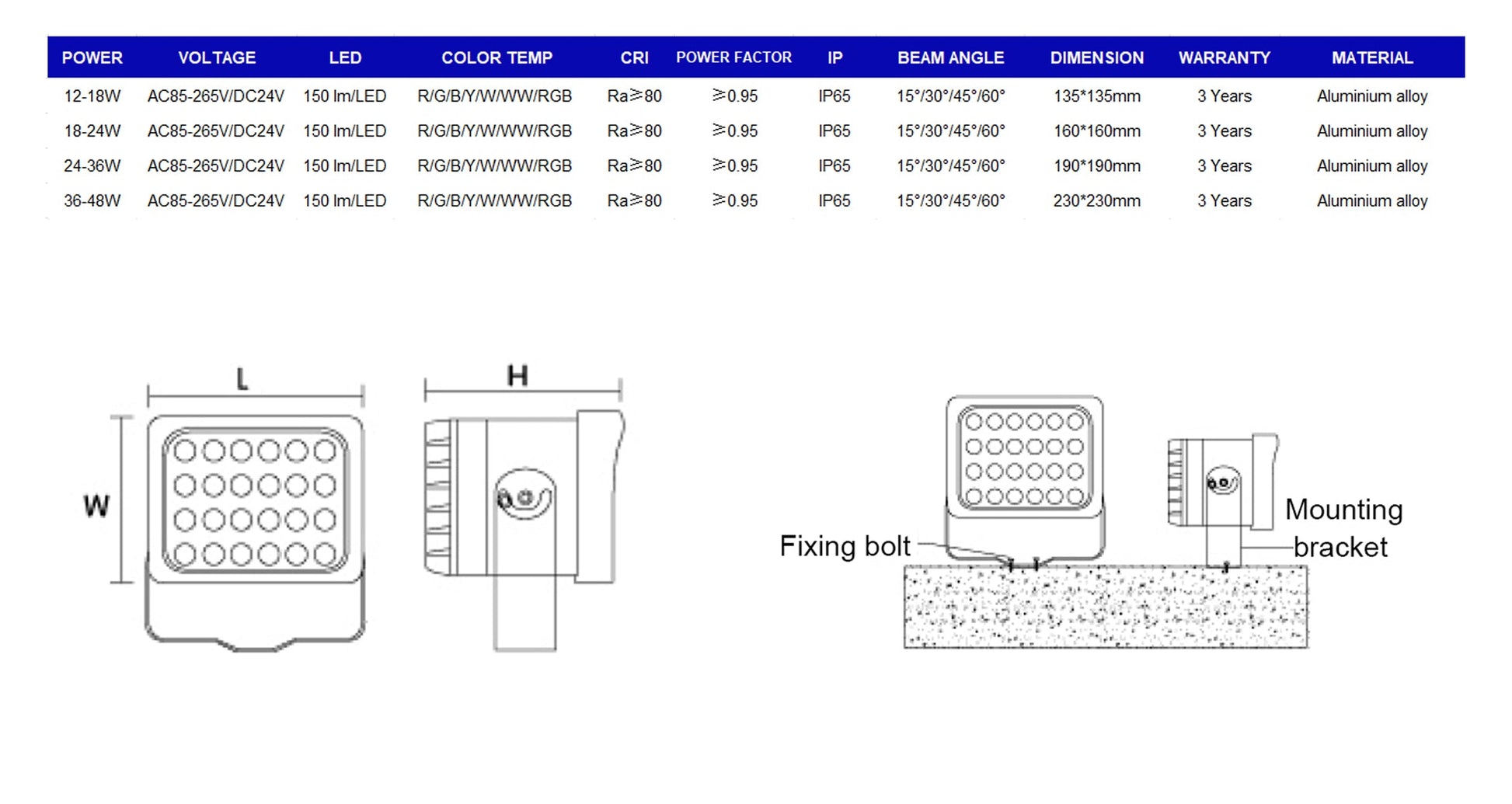 - The body is made of die-casting aluminium alloy with excellent heat-dissipation.
