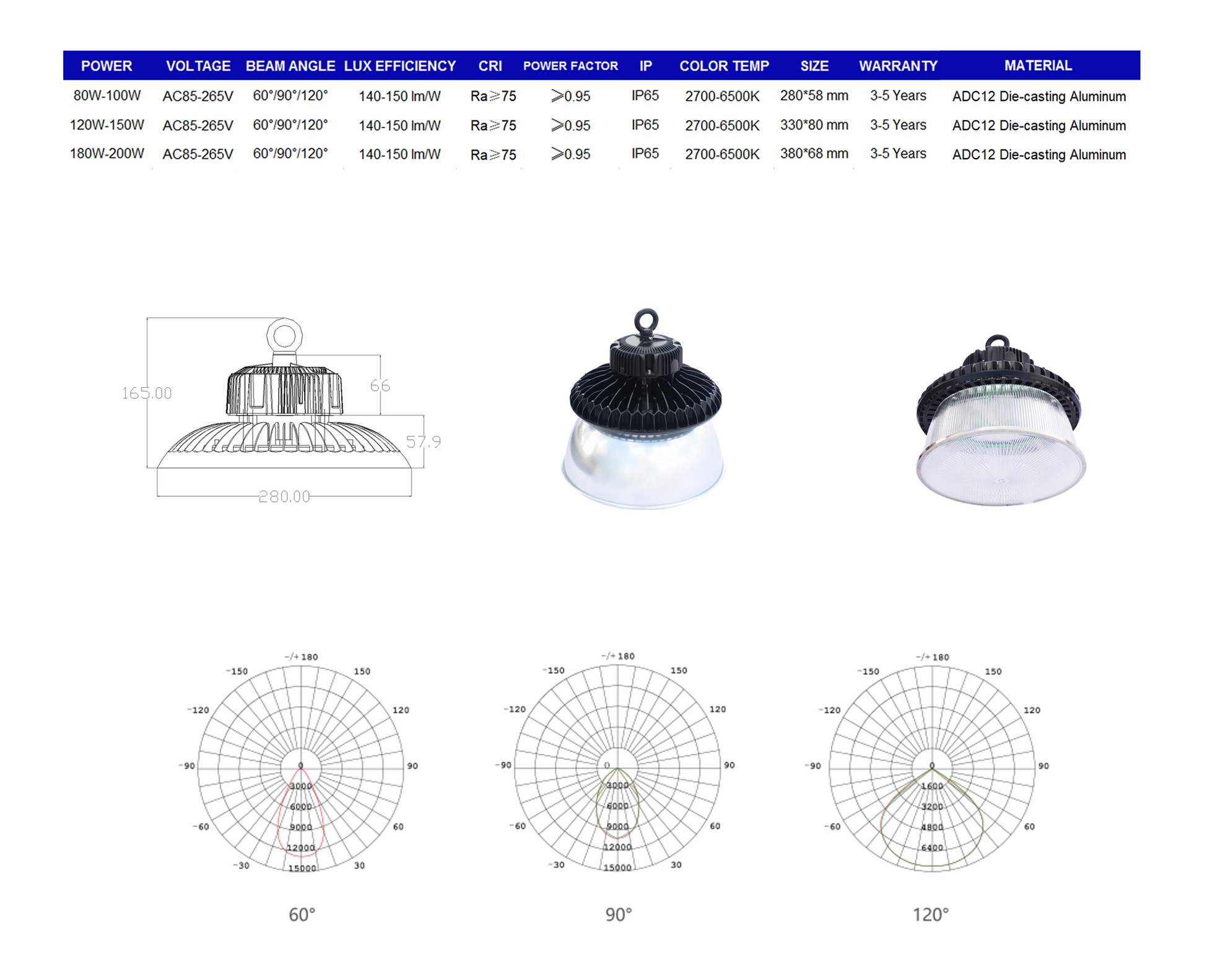 - With branded drivers of high efficiency & PF and without strobe to ensure the lamp's stability.