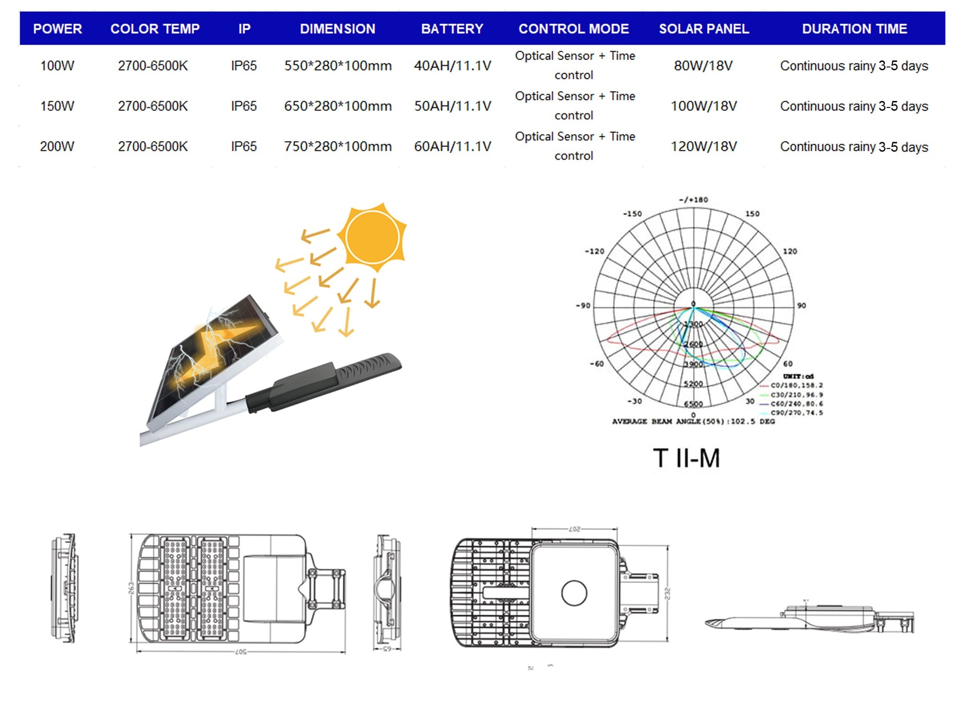 - With Intelligent Optical Control function: 12H Smart Power Control & sustainable working 3-5 rainy days