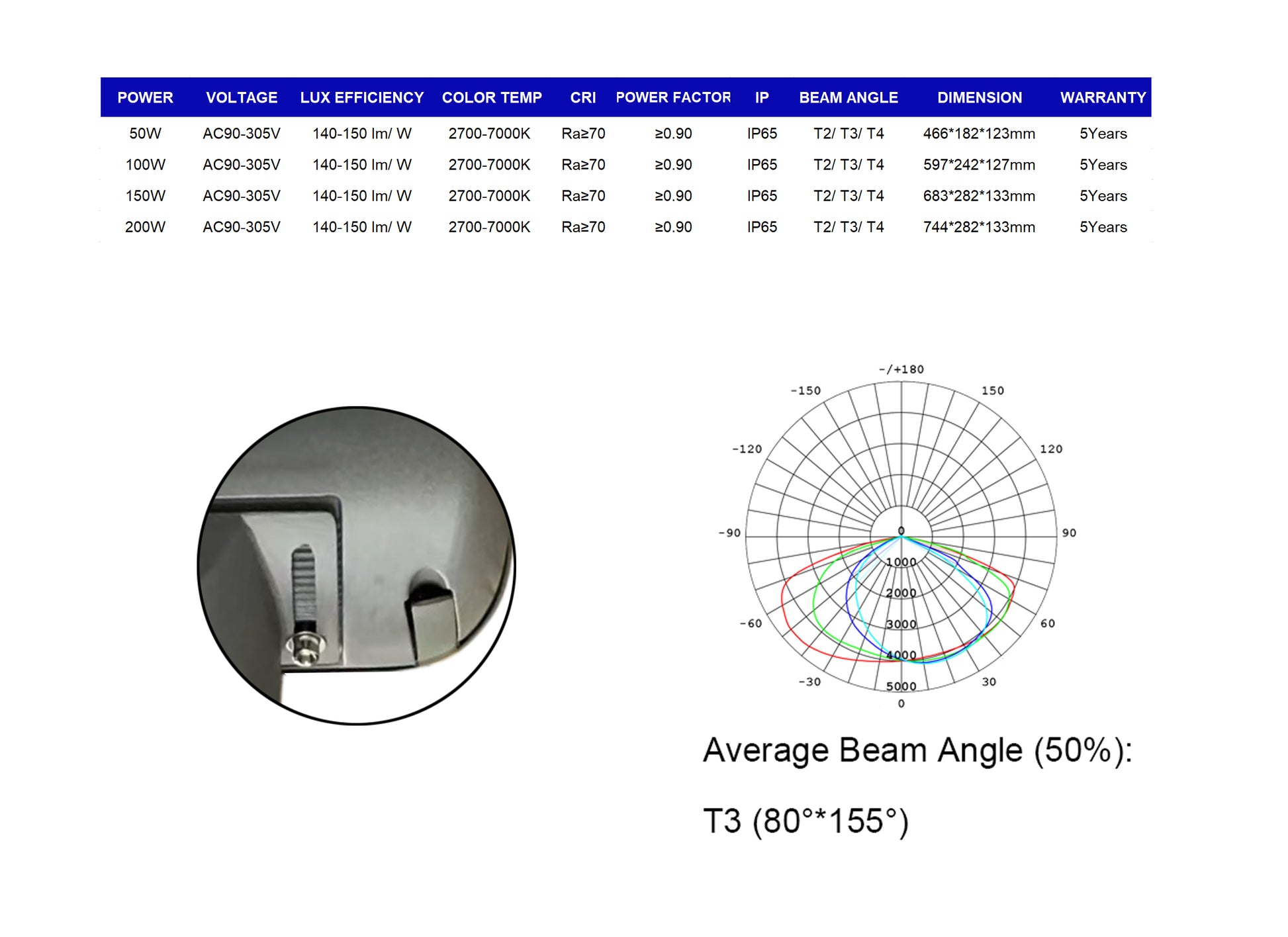 - Adopt chips of Cree/ Lumileds/ Bridgelux: high CRI & high Luminous Efficacy up to 160LM/W