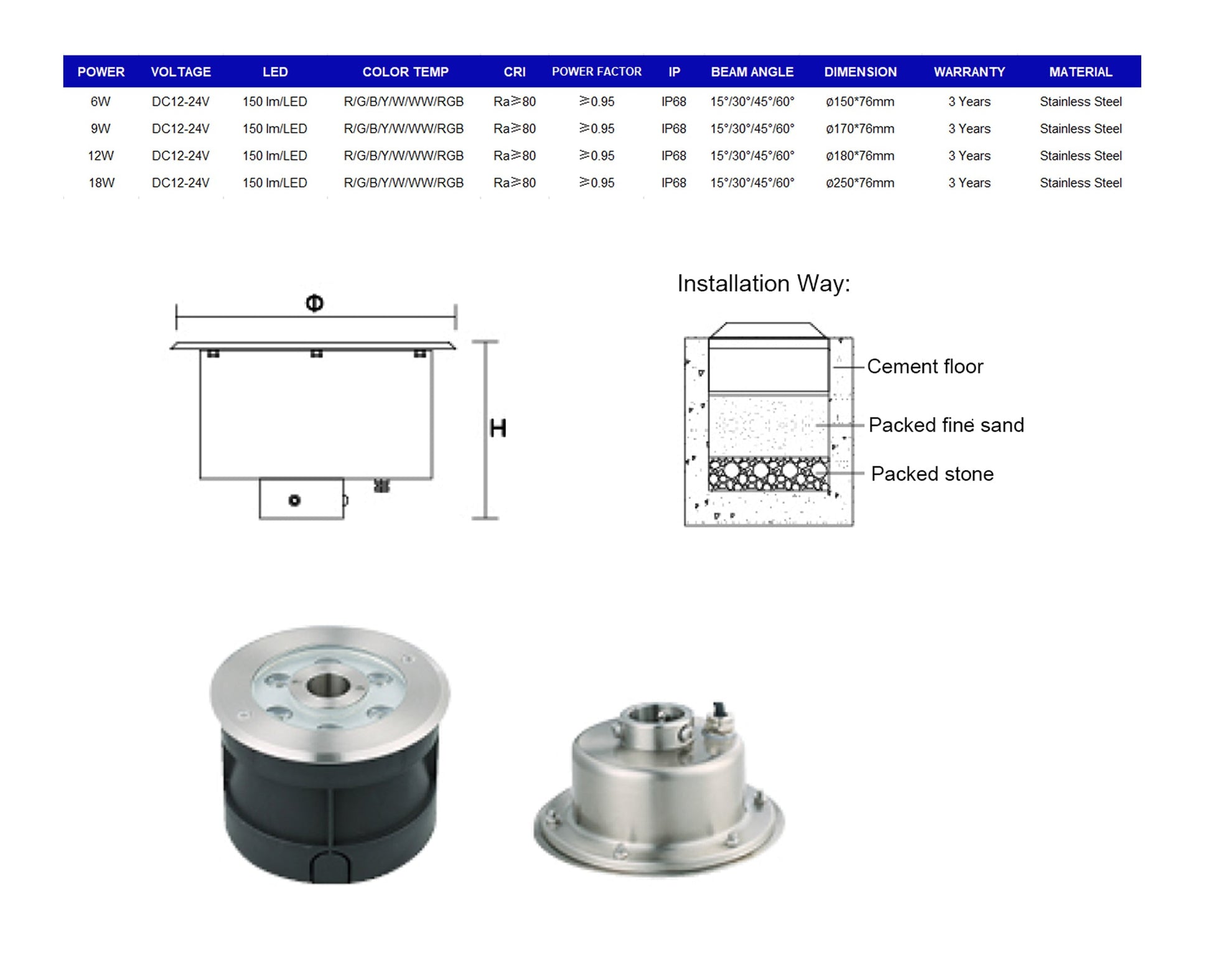 - Low voltage design & triple waterproof measures of IP68 to ensure the safe use of water: integrated lens, fully filled silicone plus anti-aging silicone sealing ring