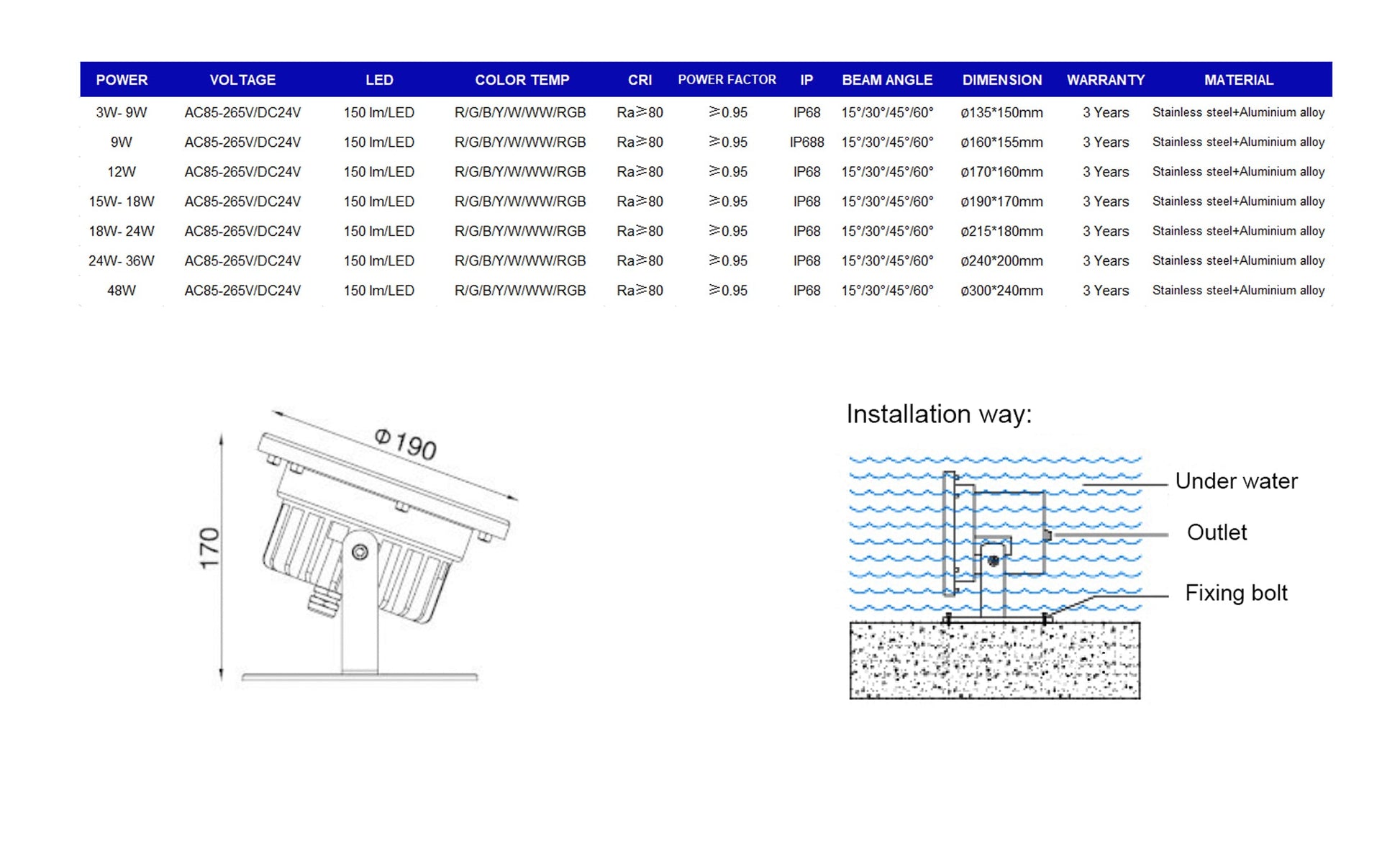 - Suitable for high-end residences, places of entertainment, clubs, parks, swimming pools, fountains etc.